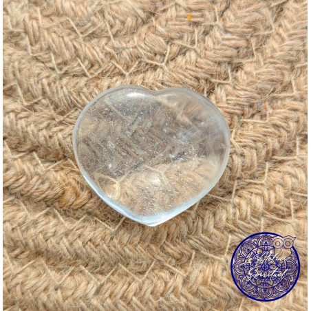 Galet coeur en Cristal de Roche, taille environ 25 à 35 mm.